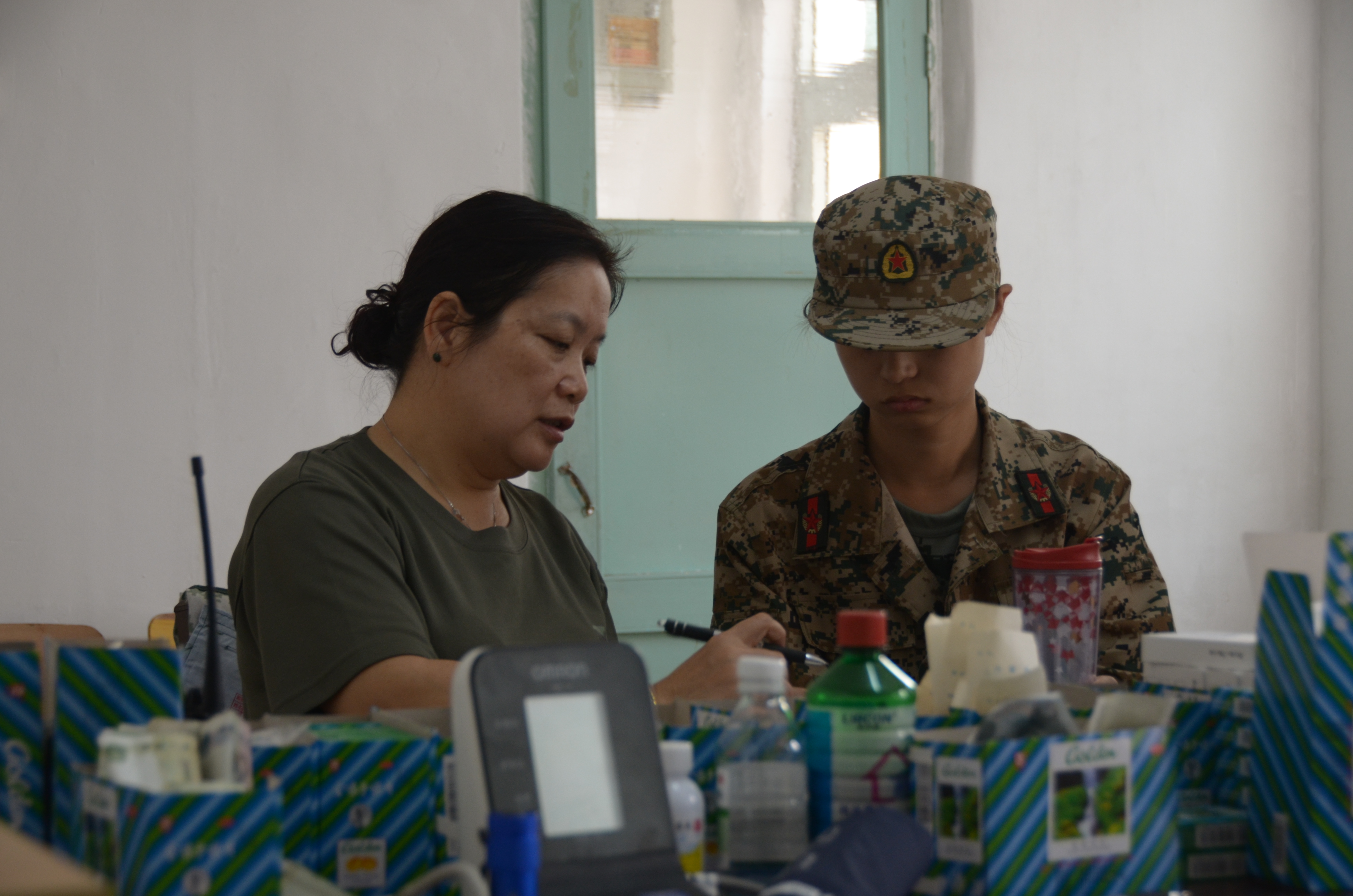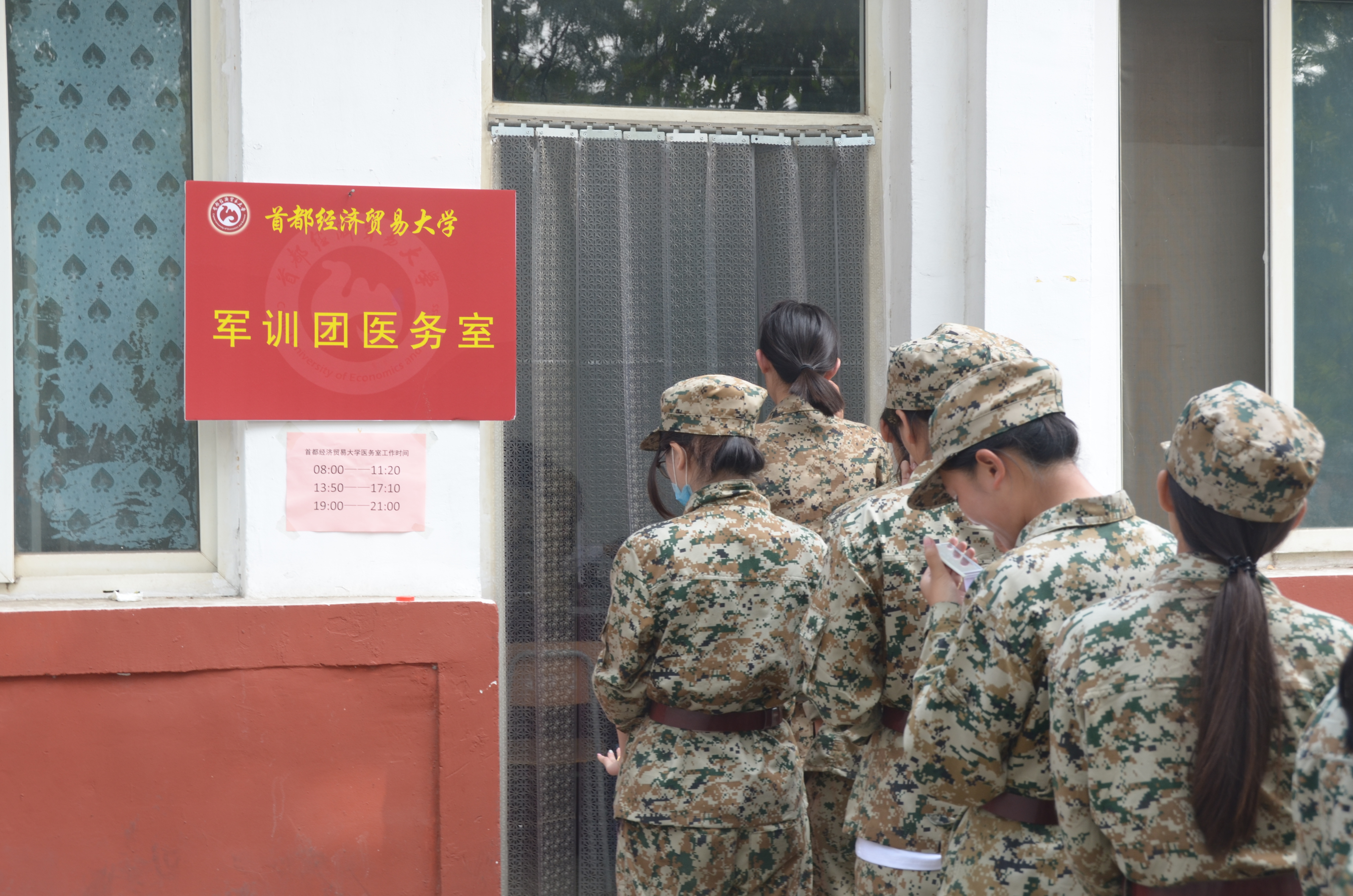 首都经济贸易大学2015级本科生军训工作于9月11日在昌平盛华军训基地正式开始。校医院驻军训基地医疗救护组委派谭洁作为负责人,芦长勇,刘媛媛作为成员共同配合完成军训期间疾病防治工作,同时进行有关卫生防疫方面的教育。