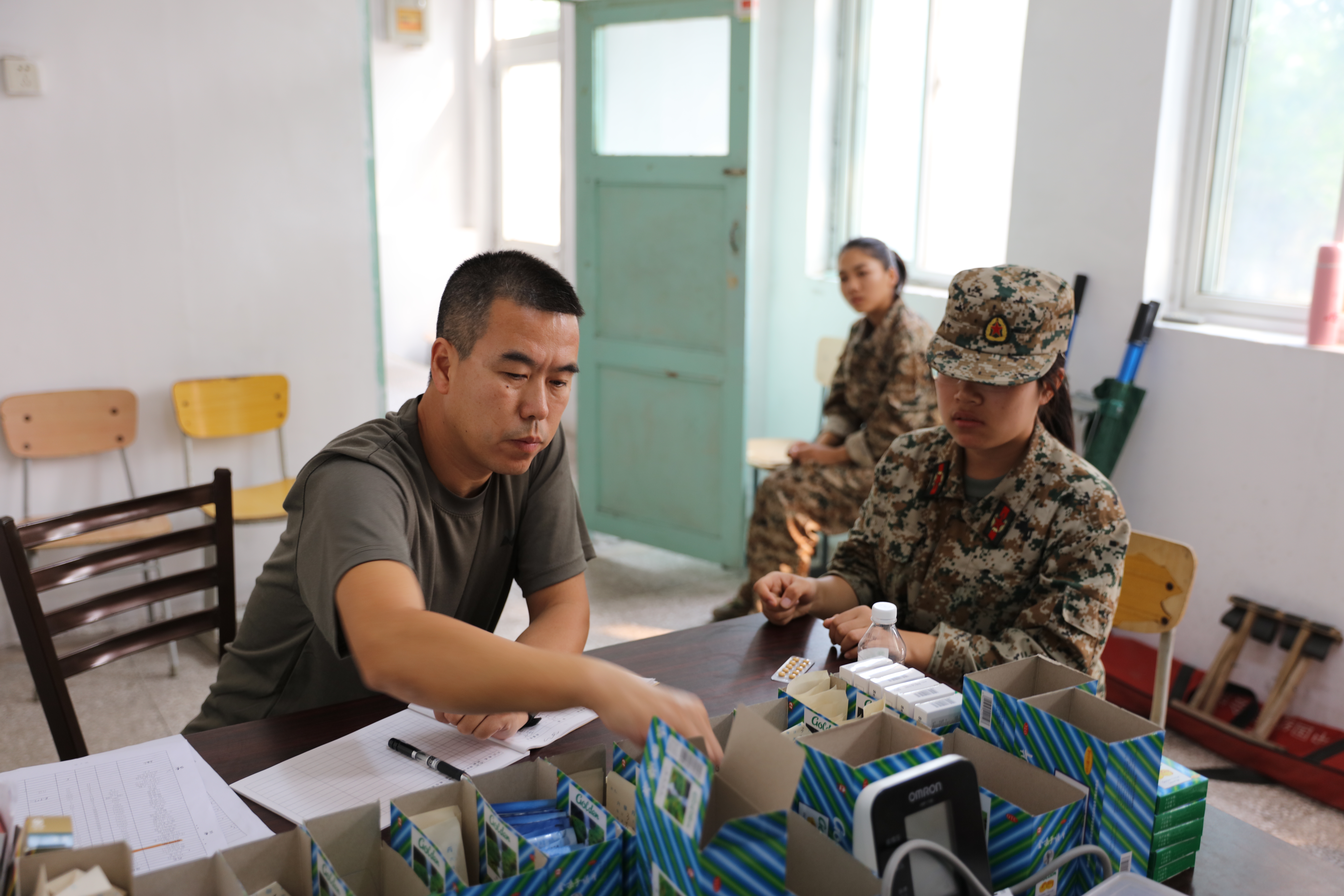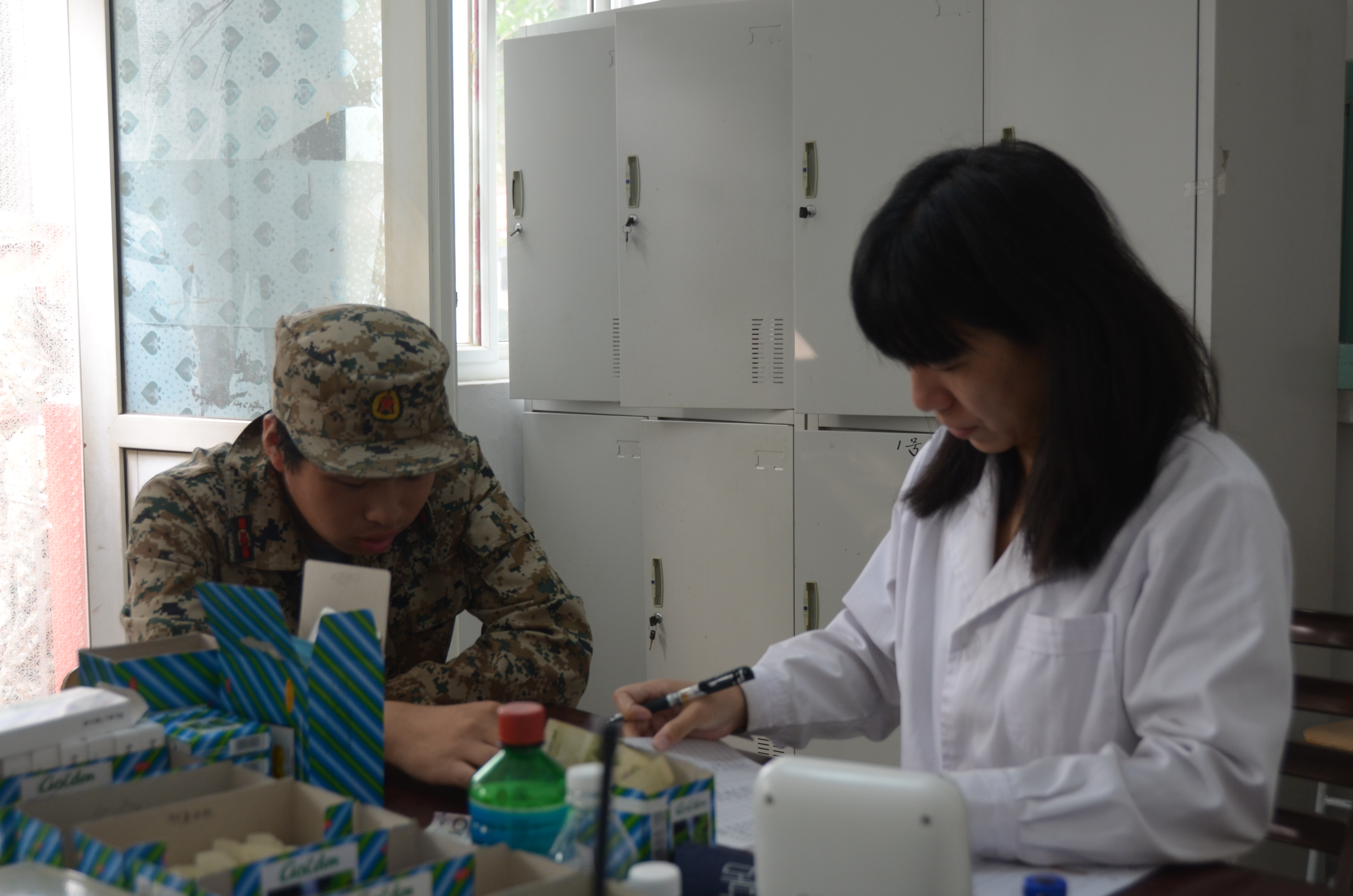 在较大的工作压力下,医疗救护组与军训团各职能部门及各院系带队教师通力配合,坚持耐心就诊,保证药品供应充足,确保军训团师生健康平稳参训。