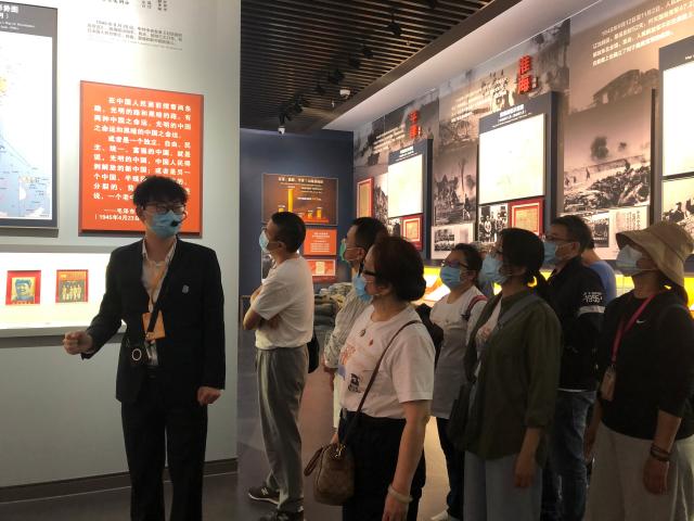 进入展厅,跟随讲解员在一张张历史图片、一件件历史文物前驻足流连。主题展览由“进京‘赶考’”“进驻香山”“继续指挥解放全中国”“新中国筹建”“不忘初心、牢记使命、永远奋斗”5个部分组成,按历史脉络,通过800多张图片、报照、地图、表格和1200多件实物、文献和档案。嘉兴的红船、人民解放军入城式行进路线图、为解放军渡江战役使用的木船、摇撸的小姑娘、毛主席等老一辈革命家使用过的珍贵物件、开国大典时悬挂在天安门城楼上的两个大红灯笼、使用过的十门礼炮,感受新中国成立前那段激昂奋进的光辉岁月。